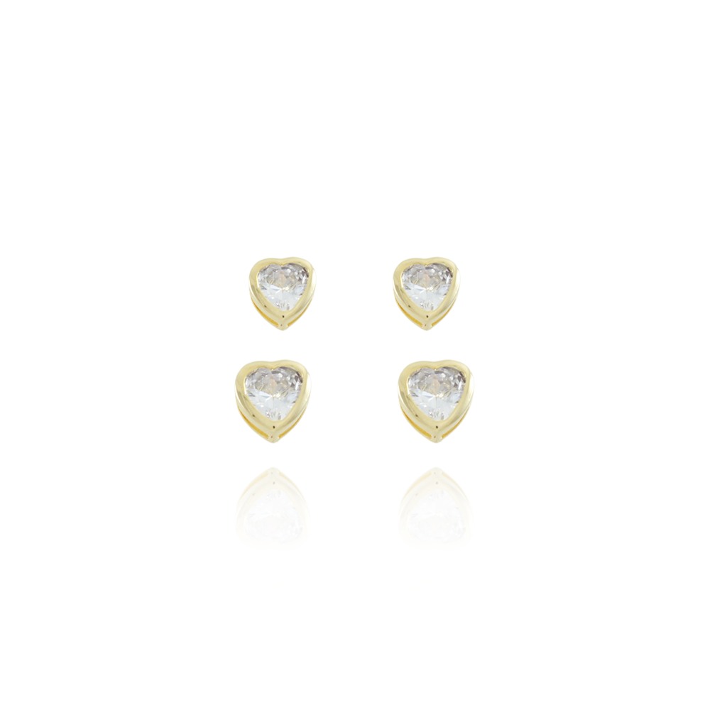 Brinco Duplo De Coração Cristal (BANHADO A OURO 18K)