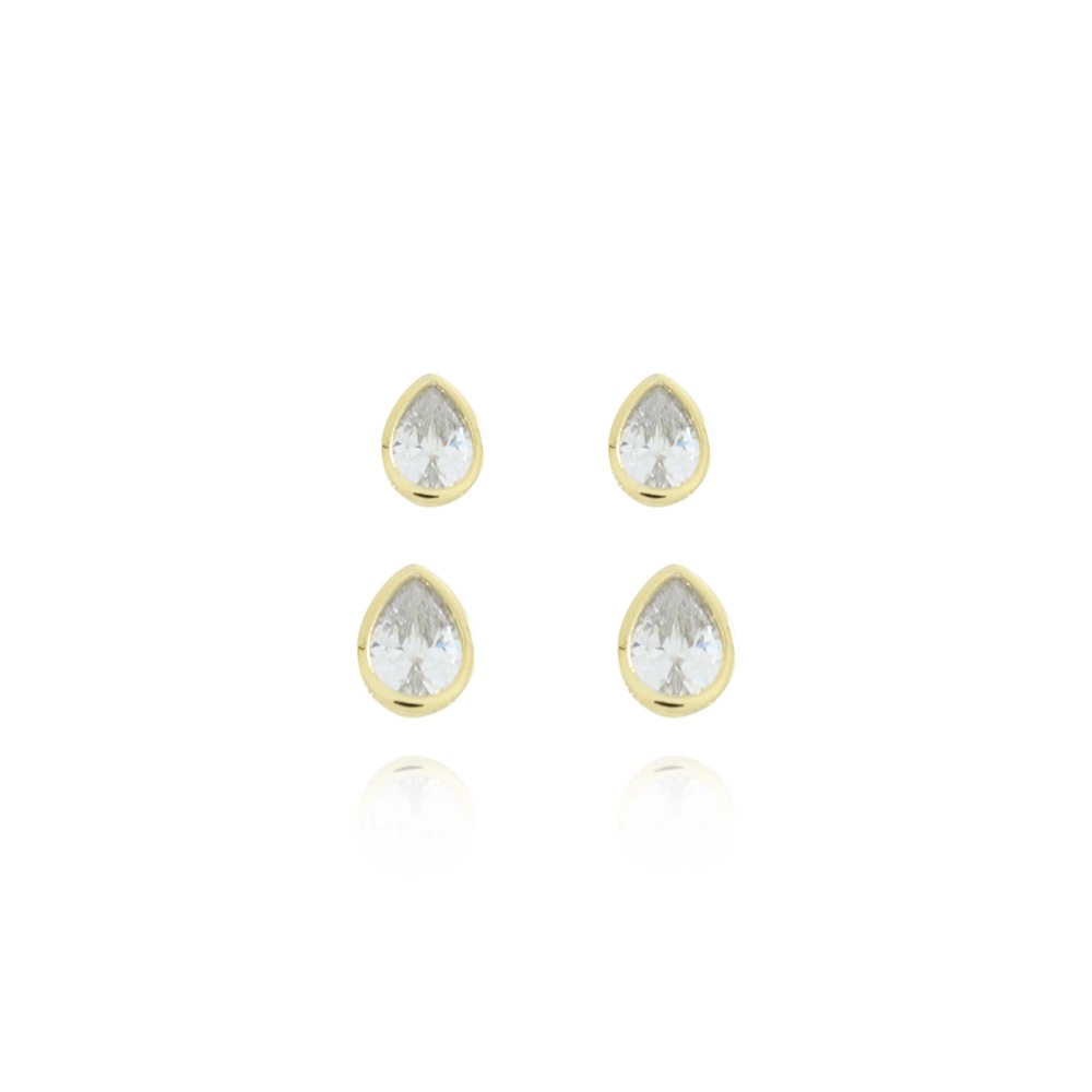 Brinco Duplo Gota Cristal (BANHADO A OURO 18K)
