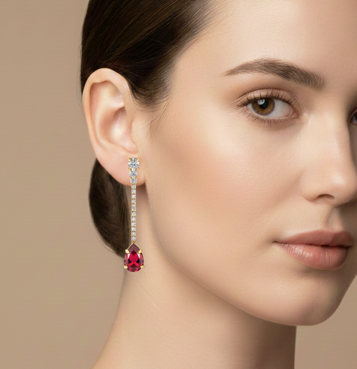 Brinco riviera com extensor de zircônia gota Pink (BANHADO A OURO 18K)