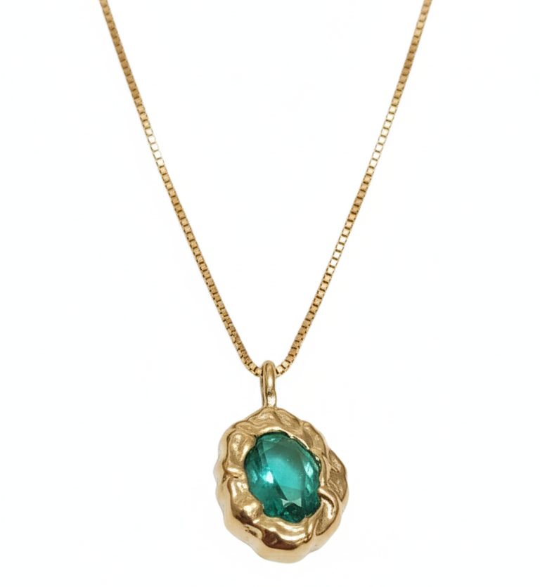 Corrente com pingente de pedra natural verde esmeralda revestida em volta (BANHADO A OURO 18K)