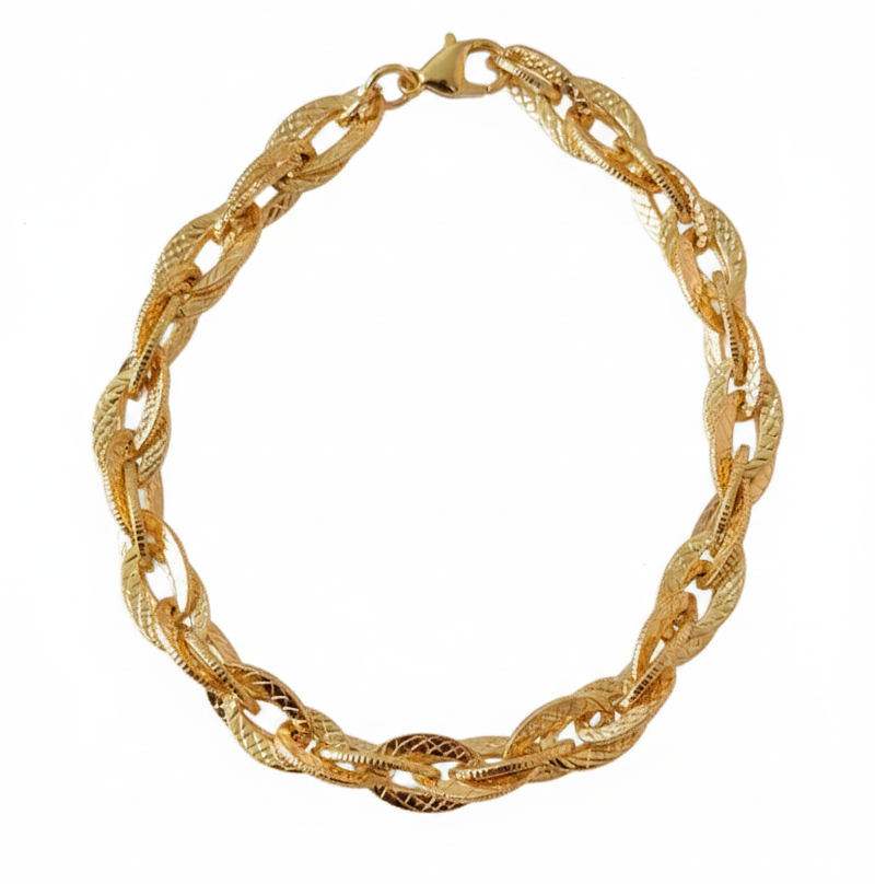 Pulseira com elos ovais texturizados (BANHADO A OURO 18K)